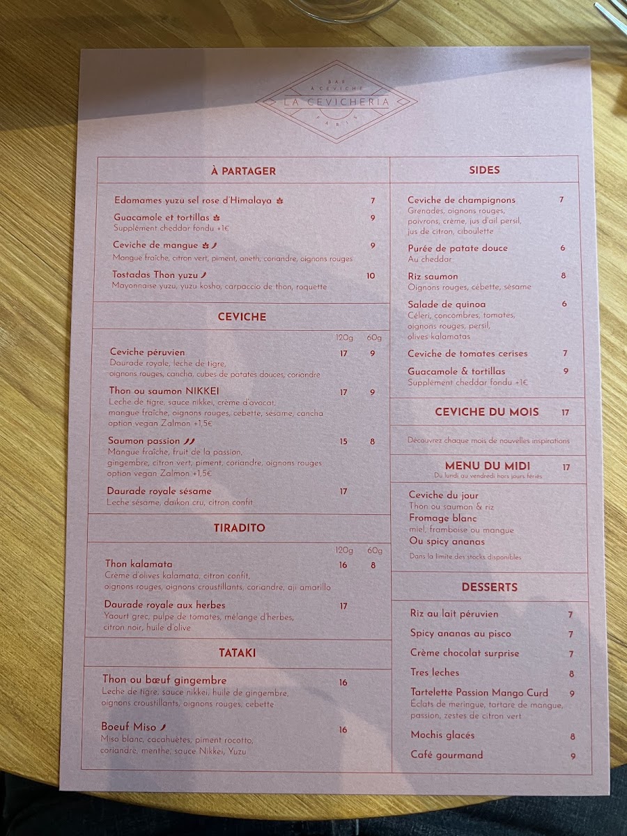 Carte & Menus - Ceviches